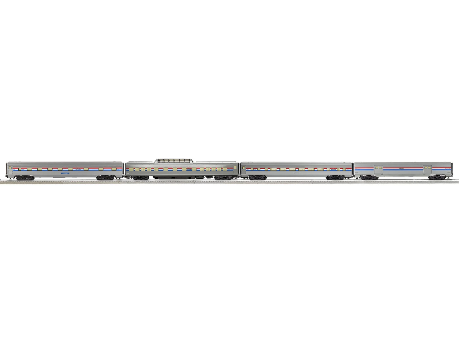 Amtrak’s “Heritage Fleet” was comprised of rebuilt equipment inherited from preceding railroads. Althoughcars received complete mechanical upgrades and modernization, they retained most of the external spottingfeatures of their ancestry making this part of the roster some of the most interesting and diverse. Predominatelyused on eastern long distance routes, these cars could be regularly found mixed in consists with newer Amfleetor Viewliner equipment. Many cars survived into the 1990s and beyond.This run is finished in the “Phase III” paint scheme. Introduced in 1976, nearly all of the Heritage Fleet cars worethis paint scheme at some point, even after Phase IV paint was introduced in 1993. So they’ll look right at homebehind a variety of Amtrak locomotives. Official licensee of Amtrak. Amtrak is a registered service mark of theNational Railroad Passenger Corporation.