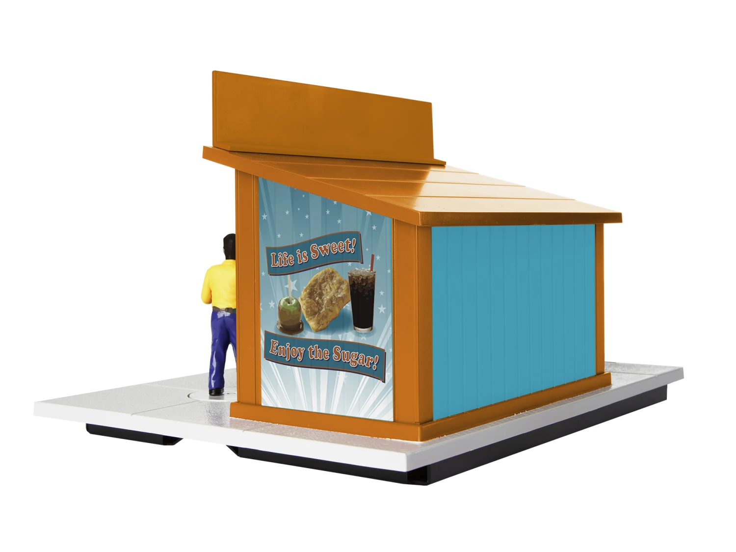 Get funnel cakes, deep fried cookies, pretzels and all the other carinval goodies at this colorful Carnival Treats Stand accessory!
