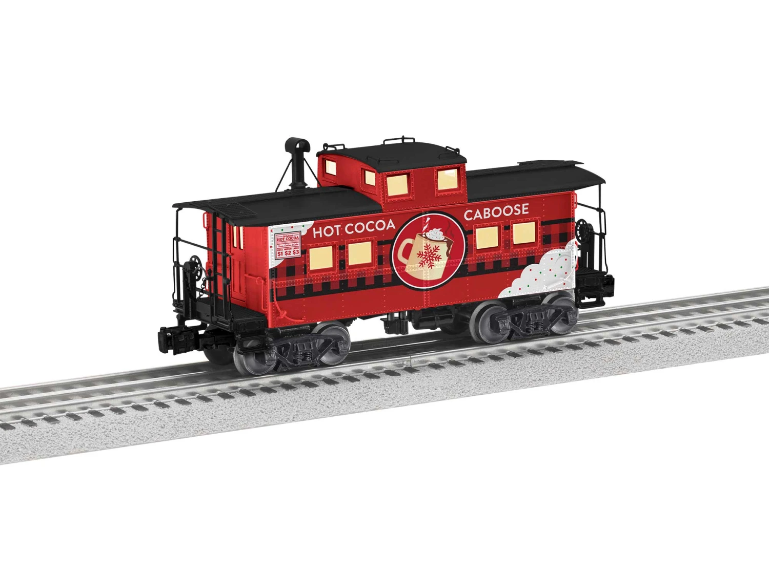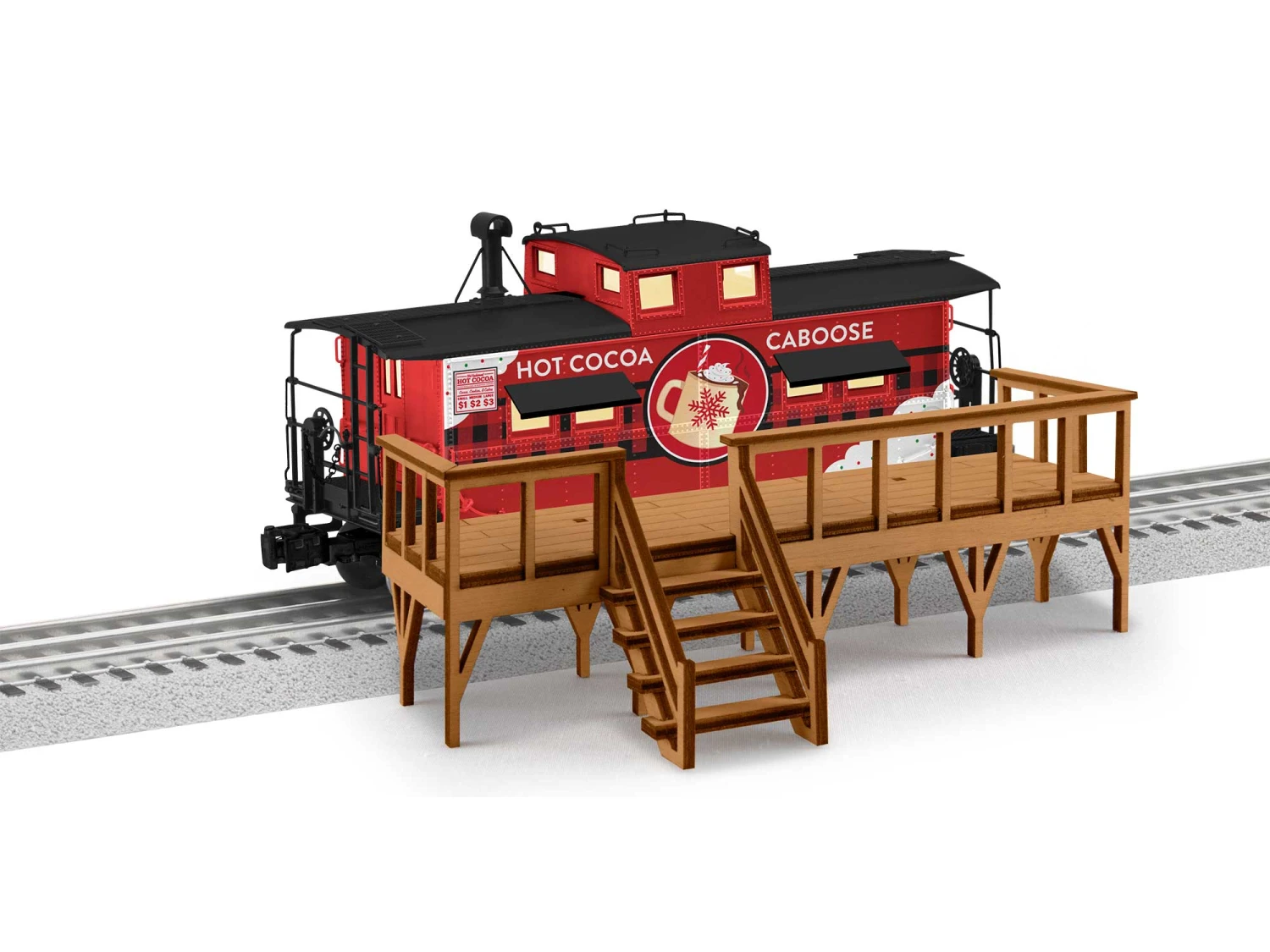 Grow your Christmas layout with this Hot Cocoa NE Caboose with Deck!