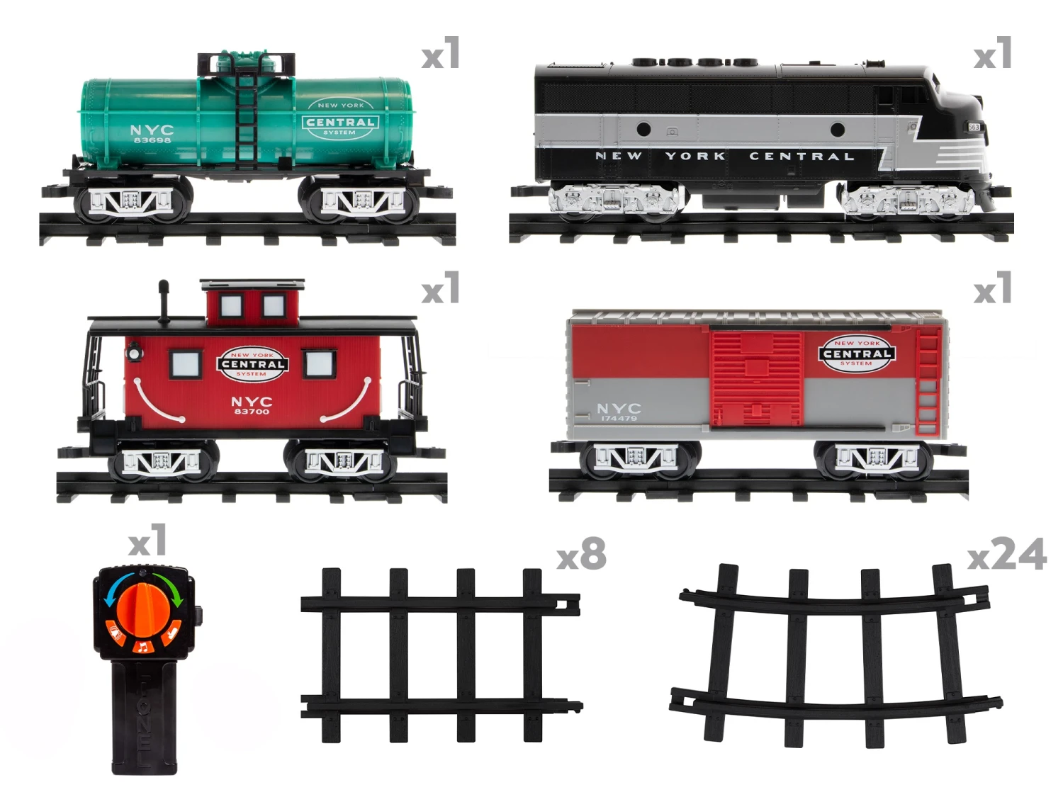 Looking for the perfect starter set for your little one? Look no further! Our Lionel New York Central Ready-to-Play set is sure to get your little engineer excited about running the rails. This affordable and highly-detailed freight train not only matches the authentic look-and-feel of an iconic road name but also comes complete with all the track, power, cars and control you’ll need to get started!
