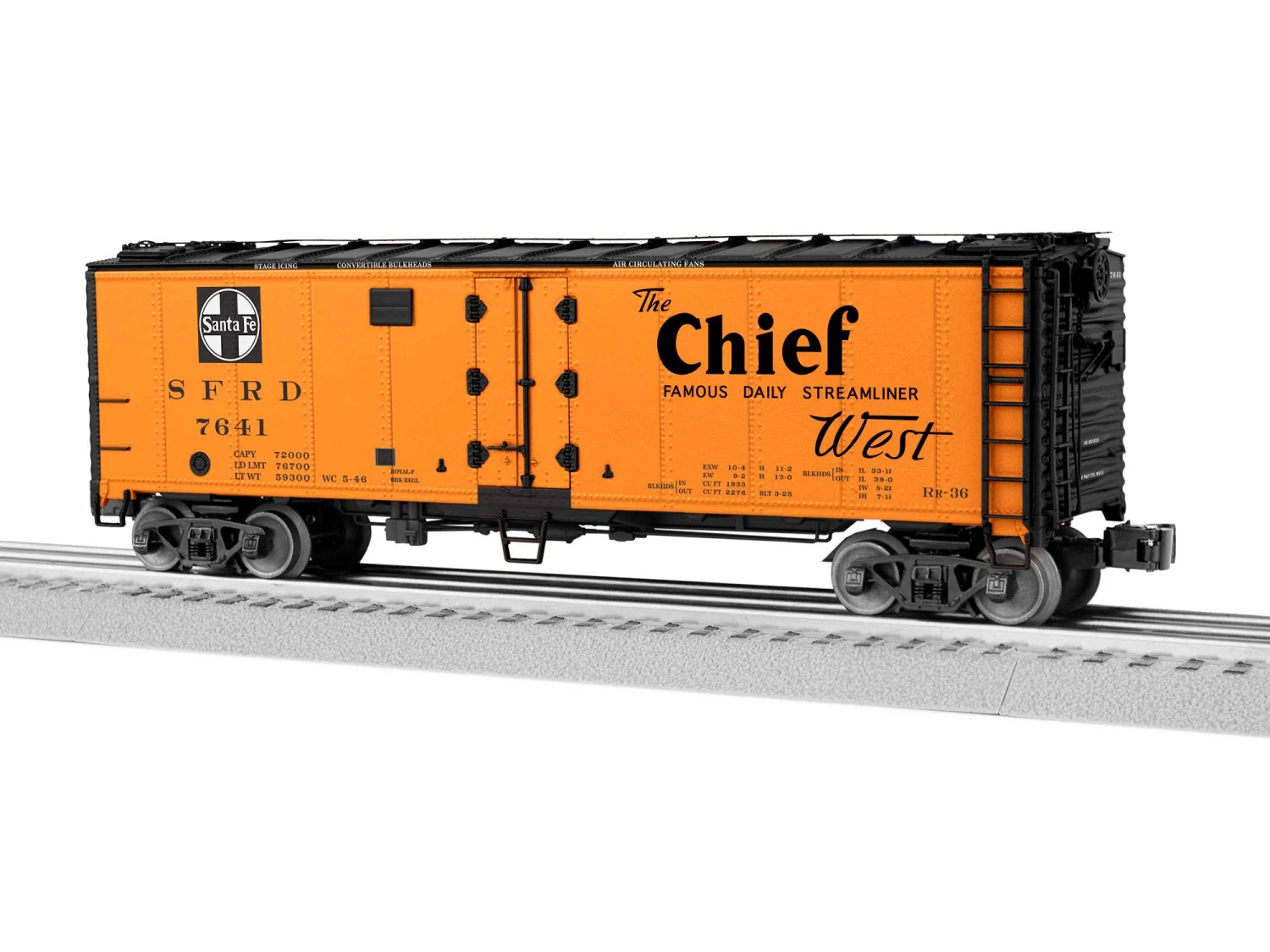 - Sound car includes Legacy Control, Legacy RailSounds including 3 stop sequences (loading, icing, unloading) and freight sounds in motion, ElectroCoupler on B end of car, operating coupler on A end, Volume control and