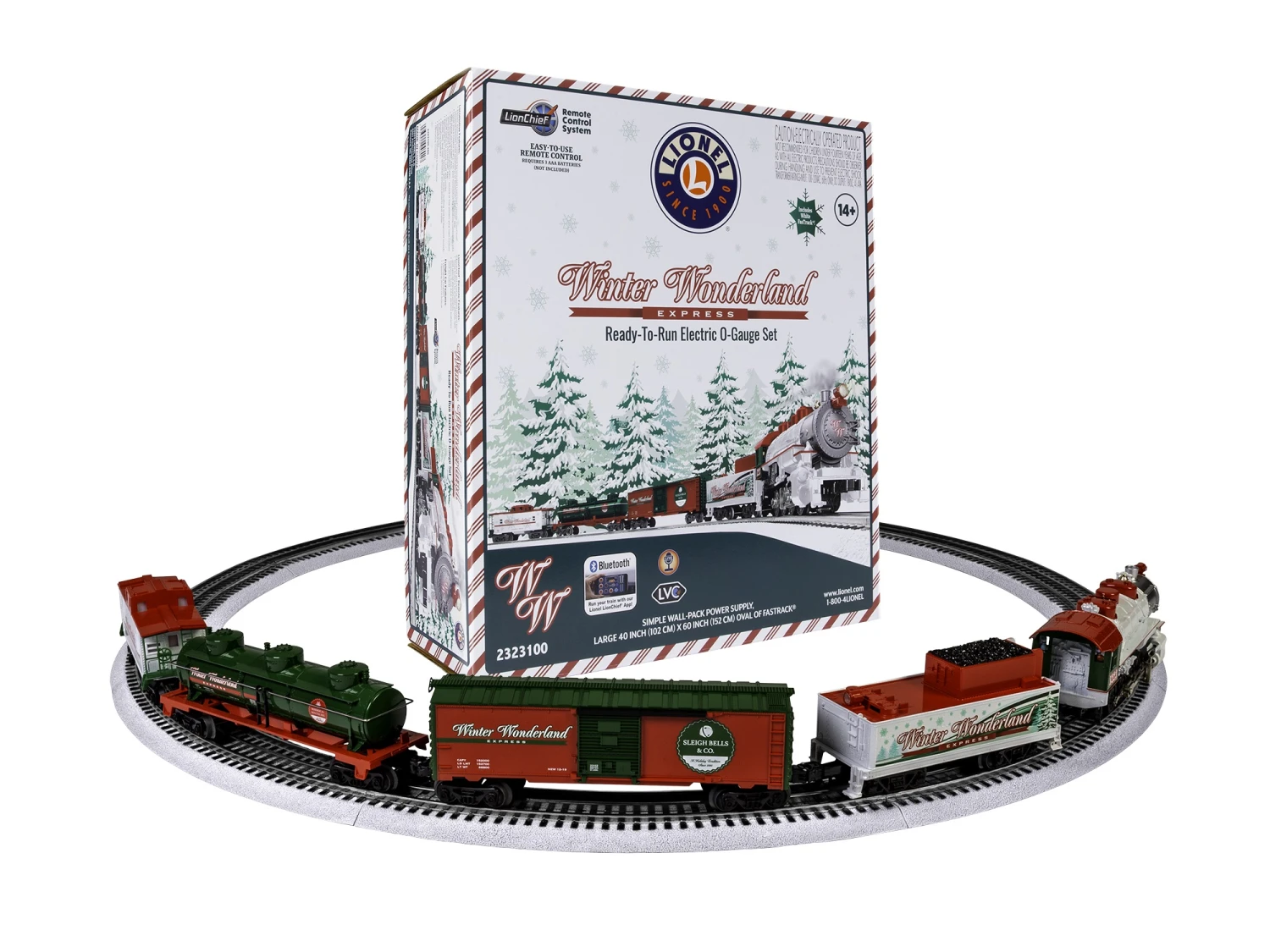 Create the perfect Winter Wonderland in your own home this holiday season with Lionel’s Winter Wonderland Railroad Ready-to-Run train set. Now upgraded to Bluetooth 5.0 to include the Voice Streaming and Recording feature; this set is guaranteed to get you into the Christmas spirit with its beautiful white 0-8-0 steam locomotive pulling festive green and red rolling stock. This set also comes with a 40″ x 60″ oval of White FasTrack®, making it a truly special set to add to your holidays.